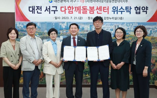 [제주교통복지신문 김강석 기자] 대전 서구는 21일 구청 갑천누리실에서 (사)한자녀더갖기운동연합대덕지부(대표 김대진)와 다함께돌봄센터 8호점 운영·관리에 대한 위·수탁 협약을 체결했다.