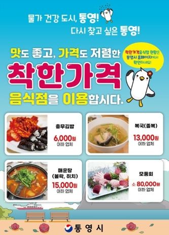 통영시(시장 천영기)는 “통영하면 충무김밥, 싱싱한 해산물을 떠올릴 만큼 한국을 대표하는 먹거리가 많다”며 “그 명성에 걸맞게 이번 기회에 반드시 물가를 잡아 다시 찾고 싶은 통영으로 자리매김할 수 있도록 최선을 다하겠다”고 전했다.