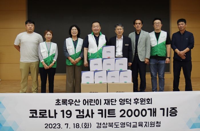 [제주교통복지신문 김강석 기자] 경상북도영덕교육지원청은 7월 18일 15:30, 영덕교육지원청 초연관에서 교육장, 초록우산 어린이재단 영덕후원회장, 김은희 영덕군의회 의원 외 영덕교육지원청 및 영덕후원회 관계자 포함 총 8명이 참석한 가운데 코로나19 검사 키트 기증을 위한 물품 전달식을 운영했다.