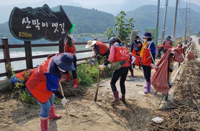 이날 봉사자들은 큰비가 휩쓸고 간 칠성면 외사리 일대 하천 주변에서 쓰레기와 부유물을 수거하고 주택과 상가의 토사와 가재도구를 정리하는 등 수해복구에 동참했다.