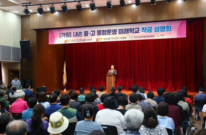 [제주교통복지신문 김강석 기자] 경기도군포의왕교육지원청과 의왕시는 21일 내손2동주민센터 대강당에서 학부모 및 시민들을 대상으로‘(가칭)내손 중․고 통합운영 미래학교 착공설명회’를 개최했다.