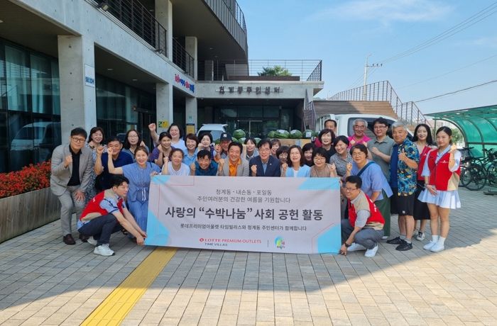 [제주교통복지신문 김강석 기자] 프리미엄아울렛 롯데타임빌라스가 21일 중복을 맞아 수박 150통을 의왕시 청계동 관내 경로당과 복지시설 30여 곳에 전달했다.
