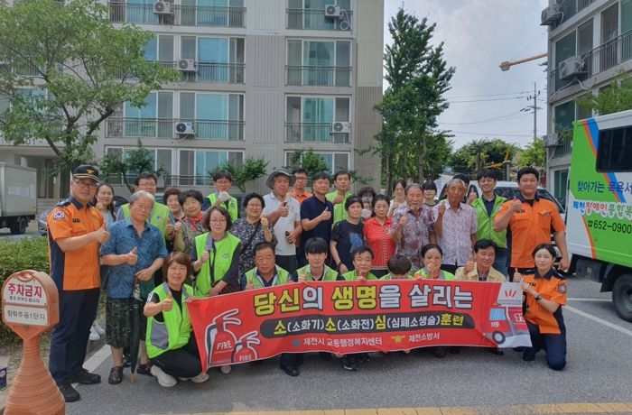 [제주교통복지신문 김강석 기자] 제천시 교동행정복지센터는 제천소방서와 함께 지난 20일 장락 천일베리굿 아파트와 장락주공1단지 아파트에서 입주민과 관리사무소 직원을 대상으로 소(소화기). 소(소화전). 심(심폐소생술) 훈련을 진행했다.
