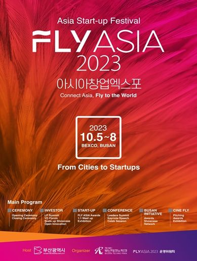 [제주교통복지신문 김강석 기자] 부산시는 아시아 창업 선도도시 간 연결과 협력을 통해 유망 창업기업의 투자유치와 해외 진출을 지원하는 아시아 창업박람회(엑스포) '플라이 아시아(FLY ASIA) 2023'을 10월 5일부터 8일까지 4일간, 벡스코 제2전시장에서 개최한다고 밝혔다.