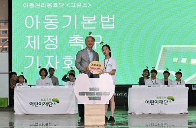 [제주교통복지신문 김강석 기자] 김이강 서구청장은 22일 오전 광천동 유스퀘어 광장에서 서구 청소년구정참여단과 초록우산 어린이재단이 주최한 아동권리옹호단 '그린즈' 아동기본법 제정 촉구 이벤트에 참석해 "지속가능한 대한민국의 미래를 위해 아동기본법 제정을 촉구한다"며 지지선언을 했다.