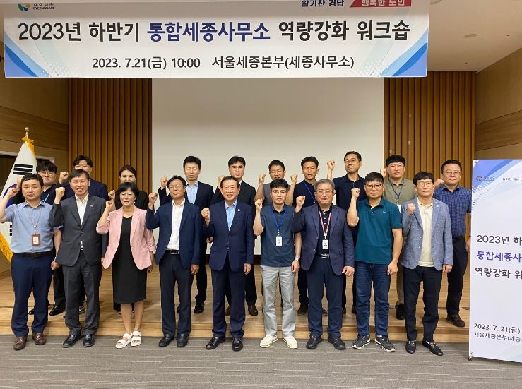 통합 세종사무소는 새롭게 합류한 시군 직원들의 조기 적응과 역량강화를 위해상반기와 하반기에 걸쳐 역량강화 워크숍을 진행하고 있으며, 지난 21일에는 7개 신규 시군 직원들을 포함한 서울세종본부 소속 직원 20여 명이 참여한 가운데 ‘2023년 하반기 통합세종사무소 역량강화 워크숍’을 성황리에 개최했다.