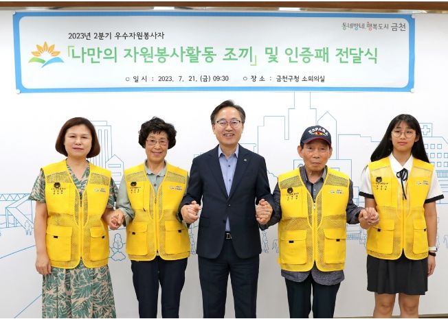 [제주교통복지신문 김강석 기자] 금천구는 7월 21일 자원봉사 활성화를 위해 2분기 우수자원봉사자를 대상으로 ‘인증패 및 나만의 자원봉사활동 조끼 전달식’을 개최했다.