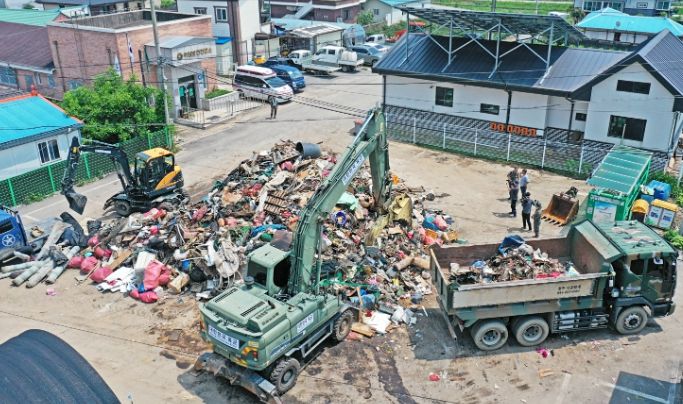수해복구 지원 인력으로 누적 인원 9,842명이 투입됐으며, 장비로는 굴삭기, 덤프트럭 등 누적 818대가 투입됐다.