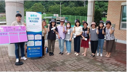 원주시청소년상담복지센터는 지난 12일 1388지원단원, 청소년안전망 등 여러 팀들과 함께 북원중학교와 태장중학교를 방문하여 과도한 스마트폰 사용을 예방하는 캠페인을 펼치고, ‘청소년의 건강한 여름나기’를 응원했다.