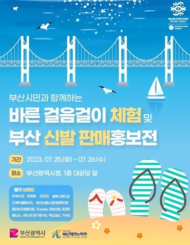 [제주교통복지신문 김강석 기자] 부산시는 시민의 바른 걷기 문화를 활성화하고, 부산 소재 신발기업의 판로 확대를 지원하기 위해 내일(25일)부터 26일까지 2일간 부산시청 1층 로비(대강당 앞)에서 ‘바른 걸음걸이 체험 및 부산신발 판매홍보전’을 개최한다고 밝혔다.