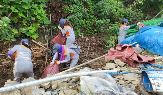 이번 복구활동에는 예산소방서 의용소방대원 및 소방서 직원 등 총 20명이 참여했으며, 논산시 연무읍 고내1리를 찾아 산사태로 무너진 과수원 주변 농막 정리 및 폐기물 제거 등 전반적인 환경 정화 활동을 추진했다.