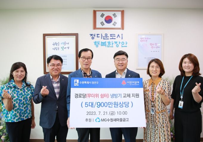 [제주교통복지신문 김강석 기자] 수원새마을금고가 지난 21일 장안구청을 찾아 무더위 쉼터로 이용되고 있는 장안구 경로당 5곳에 900만 원 상당 에어컨을 후원하기로 했다.