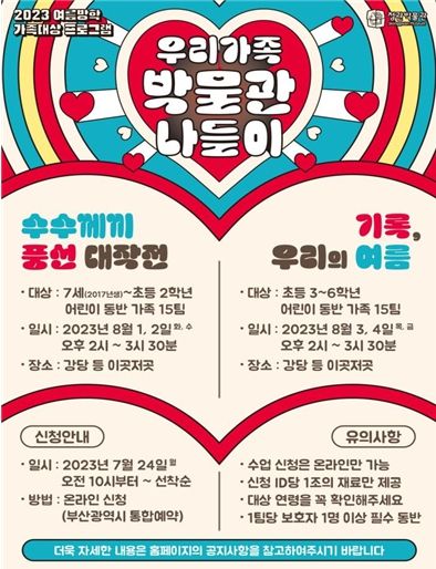 8월 1일과 2일에는 7세~초등 2학년 대상 '수수께끼 풍선 대작전'을, 3일과 4일에는 초등 3학년~6학년 대상 '기록, 우리의 여름'을 총 4회 진행한다.