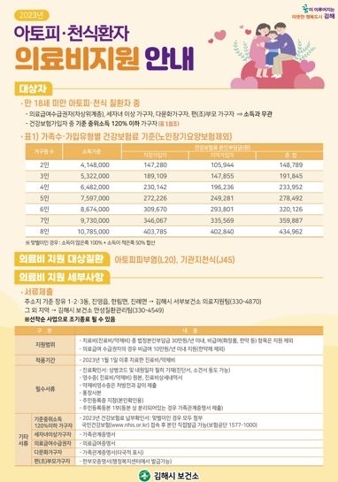 [제주교통복지신문 김강석 기자] 김해시보건소는 관내 알레르기 질환자의 적정치료, 지속관리를 돕기 위해 ‘아토피·천식 환아 의료비지원 사업’을 진행하고 있다고 밝혔다.