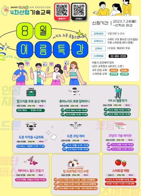 [제주교통복지신문 김강석 기자] 구로구가 전 구민을 대상으로 4차산업 기술교육 여름 특강을 진행한다.