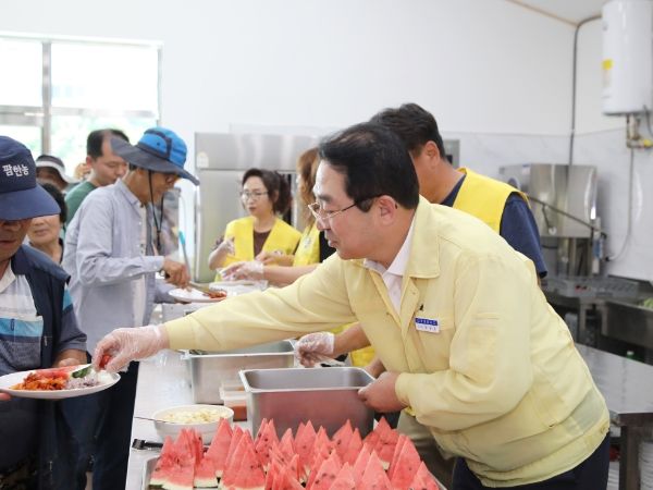 이날 마을공동체급식소에서는 동이면 석화리 마을회 임덕현 이장과 사)국제라이온스협회 365-B(대전)지구 리더스7기 회원들(회장 박영주)이 무더위에 지친 마을 어르신들을 위해 직접 요리한 삼계탕을 제공했으며, 황규철 옥천군수가 참석해 급식 봉사자로 나서며 급식소를 이용한 마을 어르신 50여 명과 급식관계자 등을 격려했다.