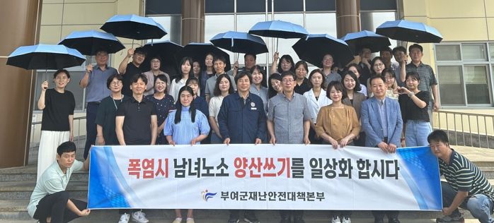 [제주교통복지신문 김강석 기자] 부여군은 연일 폭염특보가 발효된 가운데 지난 21일 인명피해에 대비하기 위해 양산쓰기 캠페인을 실시했다.