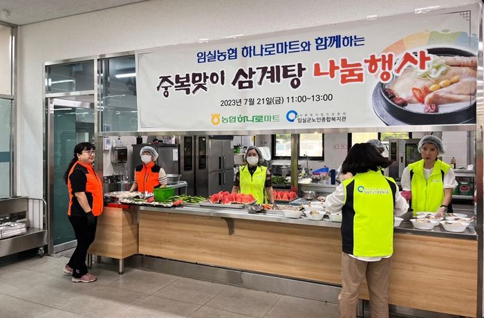 [제주교통복지신문 김강석 기자] 임실군노인종합복지관이 복날을 맞이하여 임실농협 하나로마트와 함께하는“건강한 여름나기‘복’날”삼계탕 나눔행사를 진행했다.