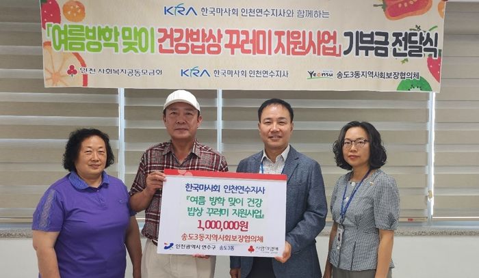 강경희·김정락 공동위원장은 “여름방학을 맞아 집에서 오랜 시간을 보내는 아동들이 건강하게 성장하길 바란다.”라며, “뜻깊은 사업을 추진할 수 있도록 후원금을 지원해 주신 한국마사회 인천연수지사에 깊이 감사드린다.”고 말했다.