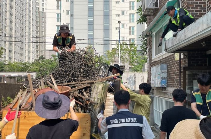 이날 동 직원 및 구 직원 350여 명과 자생 단체 회원 등 주민 150여 명은 270여 개소의 위험적치물 30t을 정비했다.