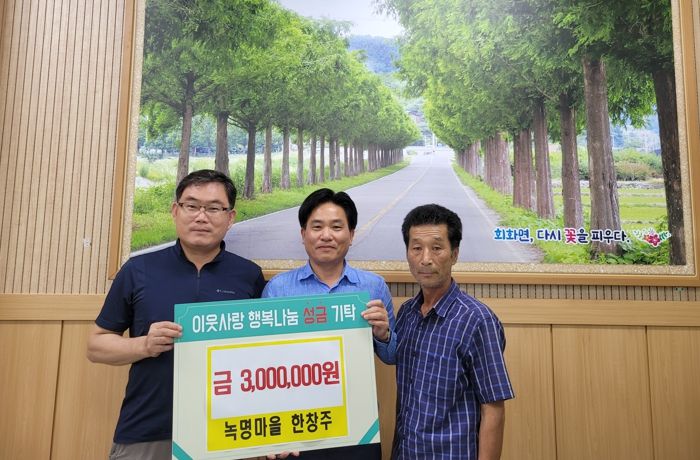 [제주교통복지신문 김강석 기자] 무진농장2 한창주 대표가 7월 21일 회화면사무소를 방문해 이웃돕기 성금 300만 원과 녹명마을 발전기금 100만 원을 기탁했다.