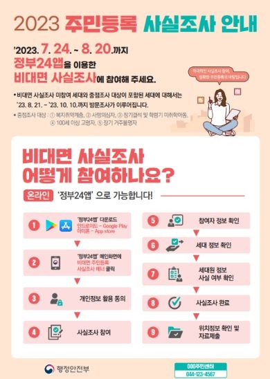 이번 사실조사 기간동안 출생미등록 아동을 선제적으로 찾고, 100세 이상 고령자 및 5년 이상 장기 거주불명자 등 주민등록시스템과 실제 거주자와의 차이를 최소화해 주민등록 인구의 정확성을 높일 계획이다.