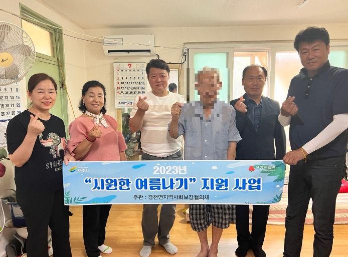 “시원한 여름나기 지원사업”은 여름철임에도 불구하고 냉방기구가 없는 가구에 에어컨을 지원하면서 혹서기를 지내기 어려운 가구를 위해 강천면 지역사회보장협의체에서 모금해 온 공동모금회비로 취약가구를 지원하는 사업이다.
