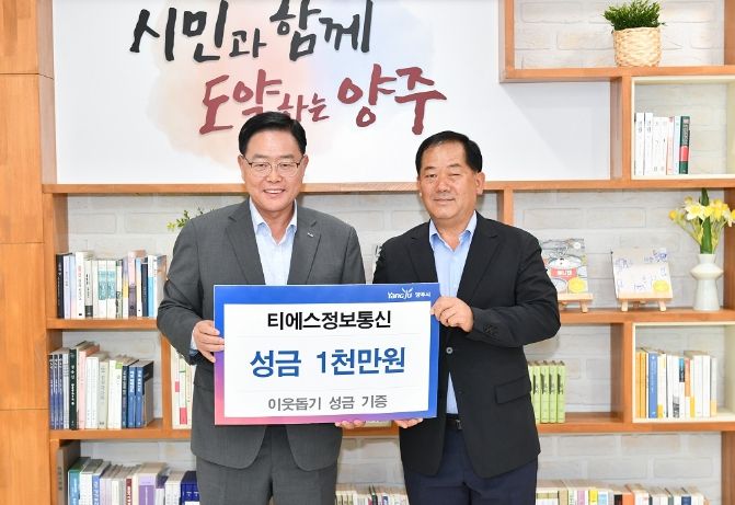 이날 성금 전달식에는 강수현 양주시장과 티에스정보통신 이대열 대표이사가 참석했으며, 이번 성금은 관내 취약계층에 전달될 예정이다.