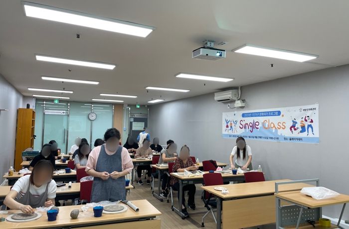 ‘싱글 클래스’ 사업은 지난 6월부터 매월 셋째 주 수요일에 운영되며, 관내 1인 가구를 대상으로 삶의 질을 향상과 사회적 관계망을 형성을 위해 도자기 공예, 라탄 공예, 캔들 공예 등 다양한 취미활동을 지원하고 있다.