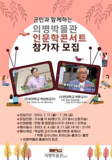 인문학 콘서트에 참여를 희망하시는 분은 오는 7월 28일까지 의병박물관 방문접수 및 전화로 신청하면 되며 수강료는 무료이다. 기타 자세한 사항은 전화 및 의병박물관 홈페이지를 참조하면 된다.