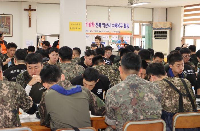 익산시와 전북도, 전주시 밥차 3대를 확보하고 이동급식차량으로 현장에서 음식을 조리한 따뜻한 점심으로 군장병의 노고에 감사를 전한다.