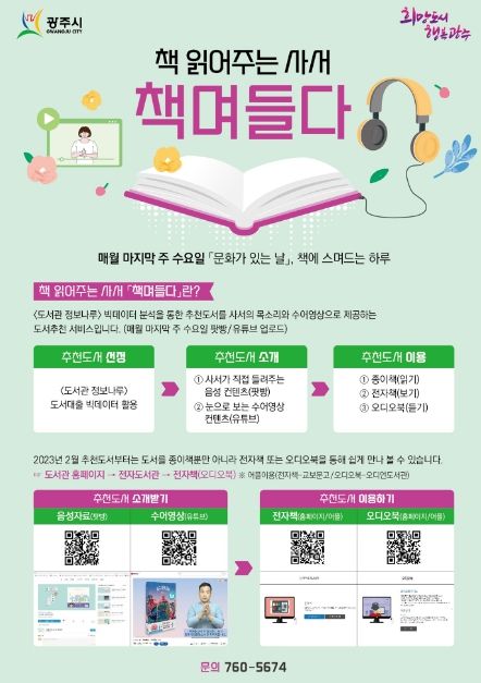 [제주교통복지신문 김강석 기자] 광주시립도서관은 빅데이터로 선별한 추천도서를 사서의 목소리를 통해 친근하게 전달하는 ‘책며들다’사업을 운영중이라고 24일 밝혔다.