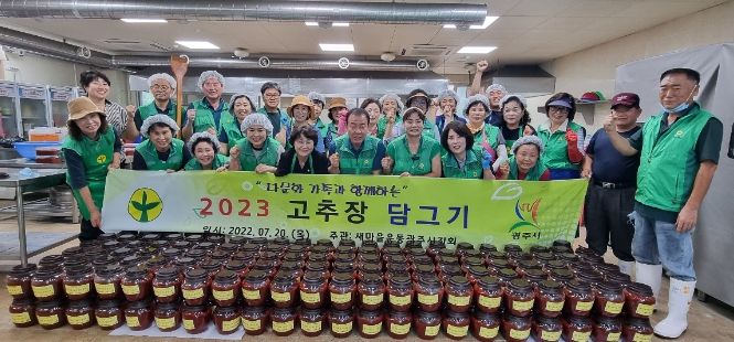 [제주교통복지신문 김강석 기자] 새마을운동 광주시지회은 20일 이웃돕기 ‘사랑의 고추장 담그기’행사를 광주시 자원봉사센터에서 진행했다.