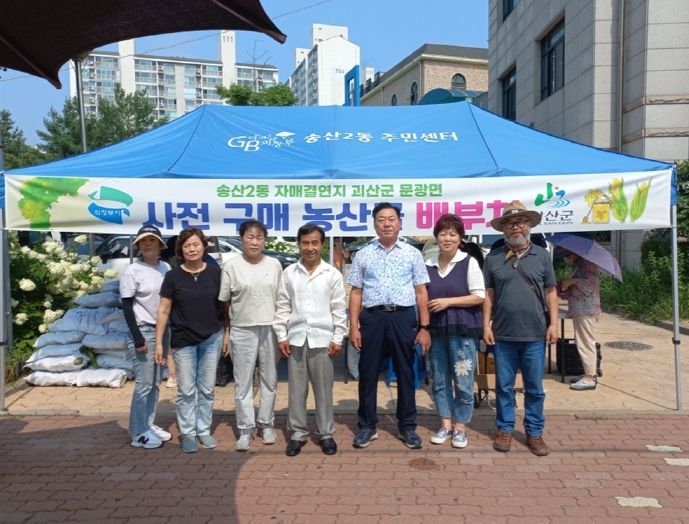 송산2동은 괴산군 문광면과 2010년 6월 자매결연 체결을 시작으로 매년 지속적으로 도농교류를 실시해오고 있다. 상반기에는 대학찰옥수수, 꿀 등의 농산물을 하반기에는 절임배추를 저렴한 가격으로 판매해 주민들의 뜨거운 호응을 얻고 있다.
