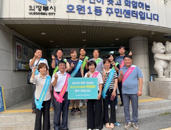 [제주교통복지신문 김강석 기자] 의정부시 호원1동주민센터는 7월 20일 ‘위기가구에 희망이 되어주세요!’라는 표어로 호원1동 지역사회보장협의체와 복지사각지대 집중 발굴 거리 홍보 캠페인을 실시했다.