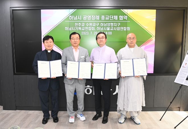 [제주교통복지신문 김강석 기자] 하남시는 최근 천주교·불교·기독교 등 3대 종교단체와 무연고 사망자에 대한 추모 의식 지원을 위한‘공영장례 업무 협약’을 체결했다고 밝혔다.
