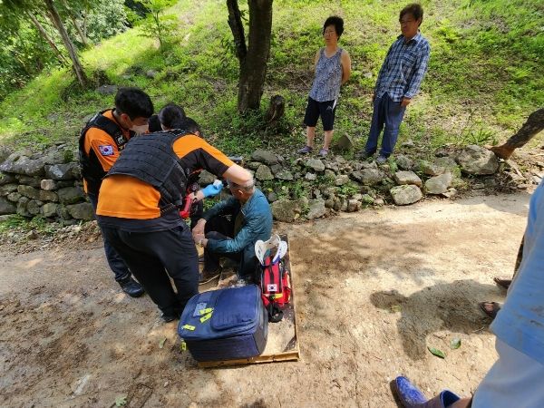 이에 신속하게 뛰어가서 구조해 부대에서 배운 응급조치로 의식과 호흡, 골절여부 확인 후 119에 신고하고 주민을 안전한 장소로 이동 조치했다. 이후 이마(3cm)와 코 등 찢어진 부위를 지혈하고 봉화군 119센터로 주민을 인계했다.