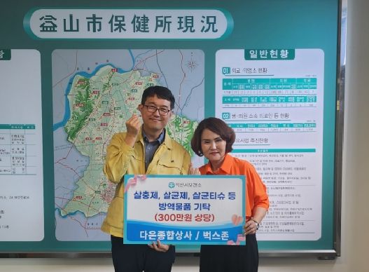 [제주교통복지신문 김강석 기자] 익산의 다은종합상사와 주식회사 벅스존은 21일 익산시보건소를 방문해 300만원 상당의 방역물품을 기탁했다.