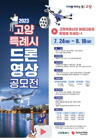 공모전은 대한민국 국민 누구나 개인 및 팀(2인 이내) 단위로 참여할 수 있다. 단, 드론 영상은 공모 기간 동안 고양시를 촬영한 영상만 인정된다. 총 상금은 350만원이다.