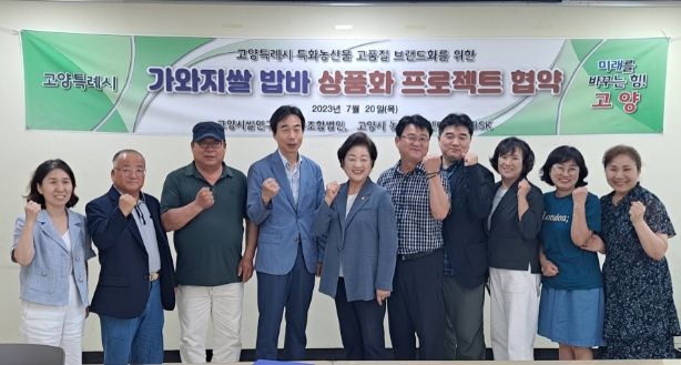 [제주교통복지신문 김강석 기자] 고양특례시 농업기술센터는 지난 7월 20일 고양시쌀연구회(대표이사 김지필)와 (주)비에스케이(대표 이진구)와 함께 가와지1호쌀을 이용한 밥바 상품화 업무협약을 체결했다.