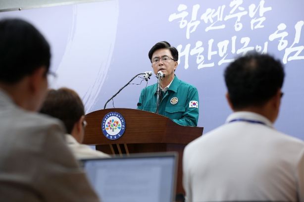 김태흠 지사는 22일 도청 프레스센터에서 기자회견을 열고, 집중호우 피해 도민 생활 안정 특별 지원 대책과 국가첨단전략산업 특화단지 지정 후속 조치 계획을 발표했다.
