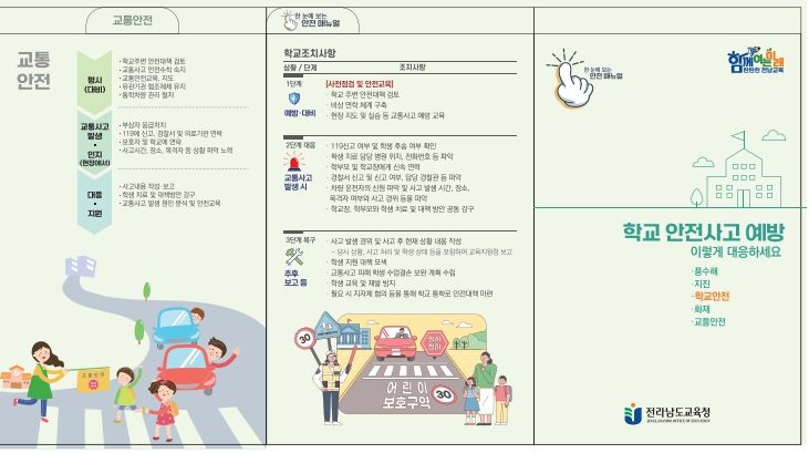 [제주교통복지신문 김강석 기자] 전라남도교육청이 학교 안전·재난사고 발생 시 행동요령을 담은 리플릿 ‘학교안전사고 예방 이렇게 대응하세요’를 제작해 각급 학교에 보급한다.