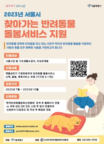 방문돌봄 지원을 희망하는 사회적약자나 펫돌보미로 활동을 희망하는 서울시민은 보조사업자에 문의하면 된다.