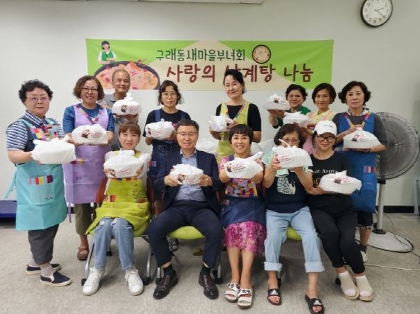 [제주교통복지신문 김강석 기자] 구래동(동장 김경수)은 중복인 21일 ‘구래동새마을부녀회(회장 이은옥)’에서 관내 취약계층 50명의 가정을 가가호호 돌며 무더위를 잘 이겨내시라는 응원과 함께 보양식 삼계탕을 전달했다. 이번 삼계탕을 받은 주민은 대부분 독거 세대로, 동에서 직접 삼계탕을 대접하며 건강 등 안부를 묻는 것에 감동했다는 후문이다.