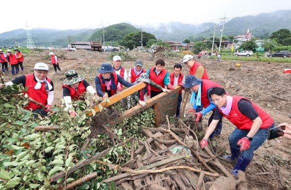예천군 감천면 벌방리 복구작업에 참여한 배한철 의장, 이칠구 운영위원장, 김대일 문화환경위원장, 윤승오 교육위원장 등 도의원들과 직원들은 가재도구 세척, 토사작업, 폐기물 처리 등 피해복구 작업에 힘을 보탰으며, 이재민들이 빠른 시일 내 일상으로 복귀할 수 있기를 기원했다.