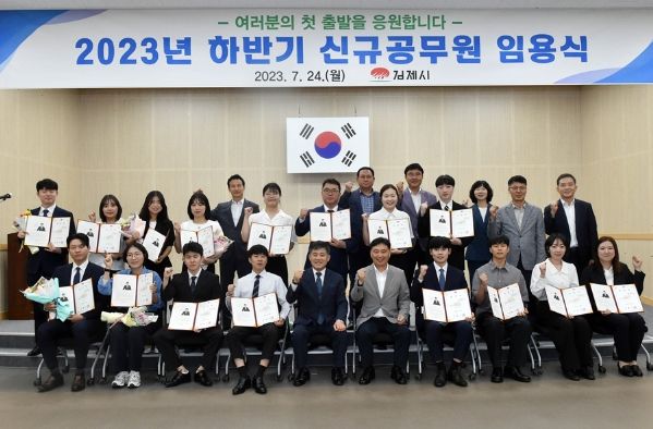 [제주교통복지신문 김강석 기자] 김제시가 24일 김제시청 대회의실에서 2023년도 하반기 실무수습 신규임용식을 개최했다.