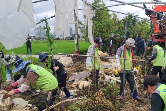 이들은 지속된 비 예보와 폭염으로 복구가 지연된 채소재배 농가를 방문해 물에 잠겼던 비닐하우스를 세우고, 폐기물과 폐농작물을 처리했다.