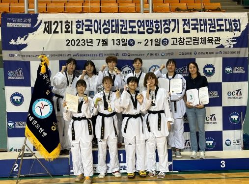 [제주교통복지신문 김강석 기자] 청주시청 태권도부가 지난 20일부터 21일까지(겨루기 부문) 전북 고창 군립체육관에서 열린 제21회 한국여성태권도연맹회장기 전국태권도대회에서 금메달 5개, 은메달 1개, 동메달 1개를 획득하며 종합우승을 차지했다.