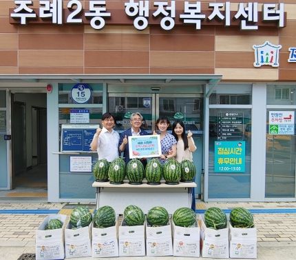 [제주교통복지신문 김강석 기자] 사상구 주례2동은 지난 21일 MG주례새마을금고에서 관내 경로당 15곳과 지역아동센터, 장애인주간보호센터 등에 수박 31개를 전달했다고 밝혔다.