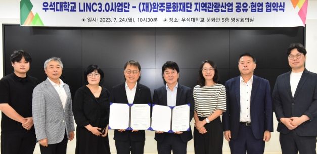[제주교통복지신문 김강석 기자] 완주문화재단과 우석대학교 LINC3.0사업단이 24일 오전 11시, 우석대학교 문화관에서 ‘문화관광분야 산학관 협력’ 협약을 체결했다.